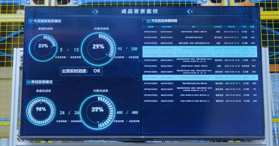与生产现场配套设立的数字化运营中心(Digital Operation Center),可实时统筹工厂全域数据,涵盖生产进度、财务状况、PSI 计划及人力资源等信息。整面大屏实时可视化呈现最新数据,经营管理层每日在此对风险与课题开展快速研讨并及时决策。这里是打通生产现场与经营管理层、实现高速化经营决策的核心枢纽。