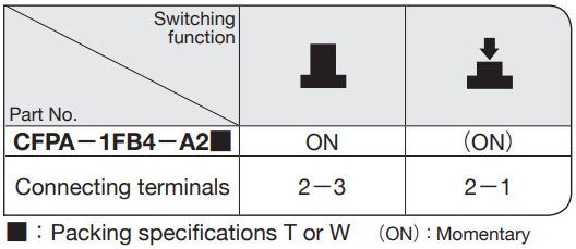 | CFPA-1FB4-A2T | 1极 | ONー(ON) | 鸥翼式 Right angle | 镀金 | Taping |