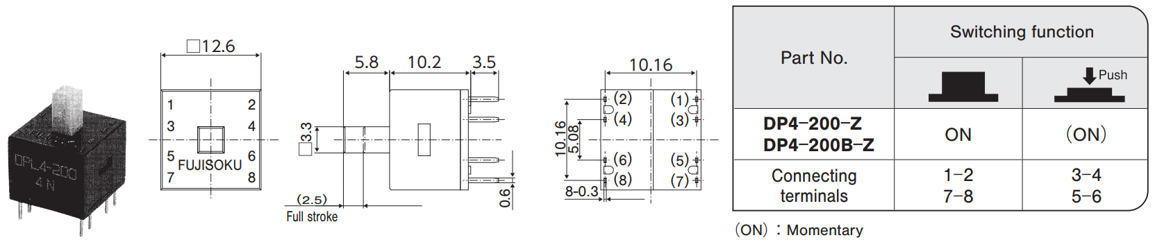 DP4-200B-Z 镀金 瞬时型 2极 ON-(ON)