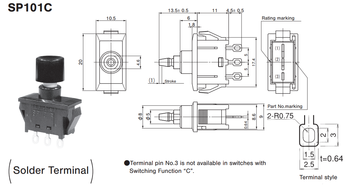 ②由于 SP101 系列不具备防水结构,若需清洗电路板,请避免清洗液接触到开关本体。