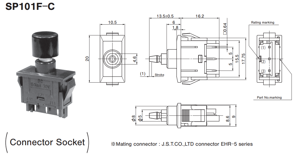 快速动作机制带来轻盈的触感反馈 触点采用镀金处理,适用于低电流环境,确保稳定导通 可安装于印刷电路板 可通过卡扣方式安装于面板 符合RoHS规范