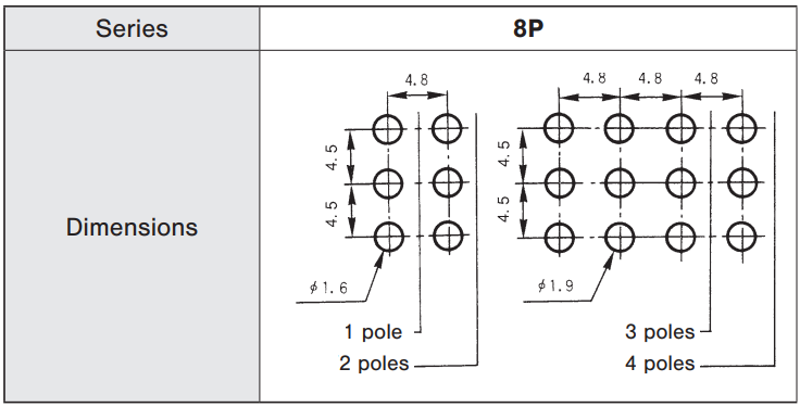 ▲ 8P2021C-Z 2极 ON-(ON) 焊接端子