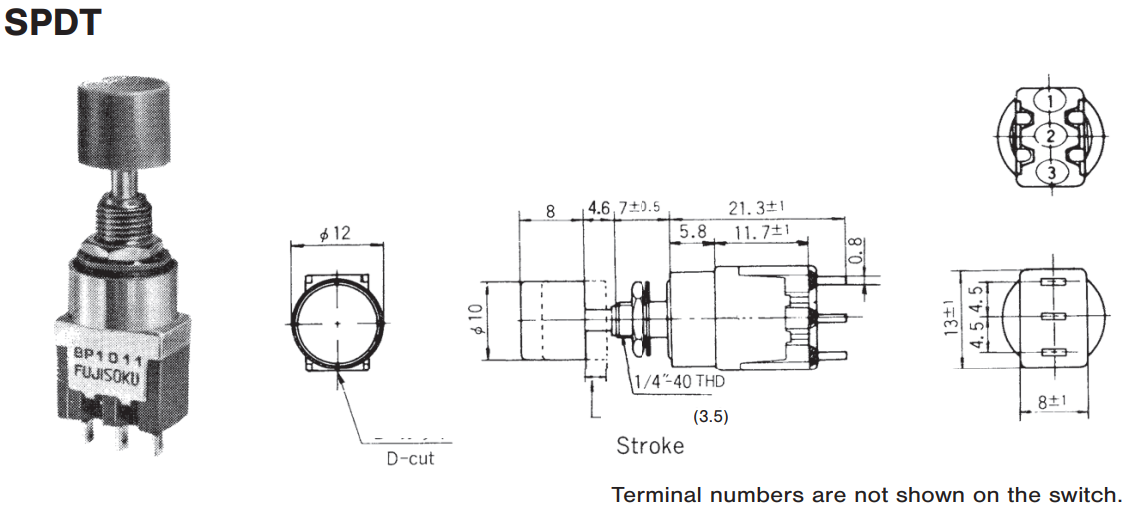 8P1021-Z 1极 ON-(ON) 焊接端子