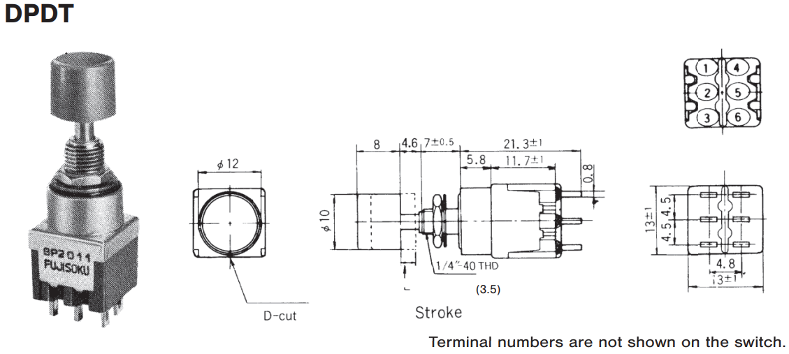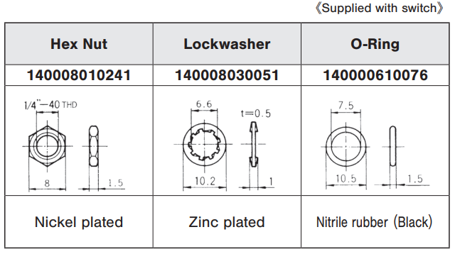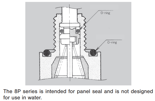 相当于IP67等级 在面板上开一个直径为φ6.5的圆孔来安装开关,也不会影响其防水防尘性能 无法使用锁定环,因此在在套筒上进行了“D”形切割,以防止开关旋转 UL, CSA