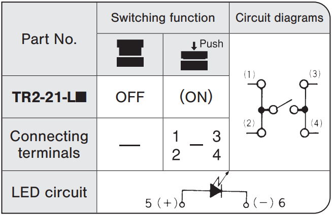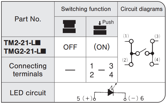 ☆ TMG2-21-L2 LED中心、照光式 中心 金属接触 镀金
