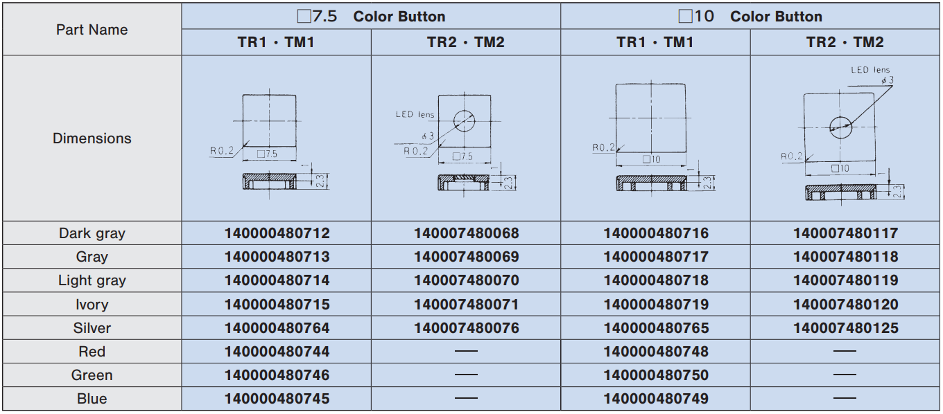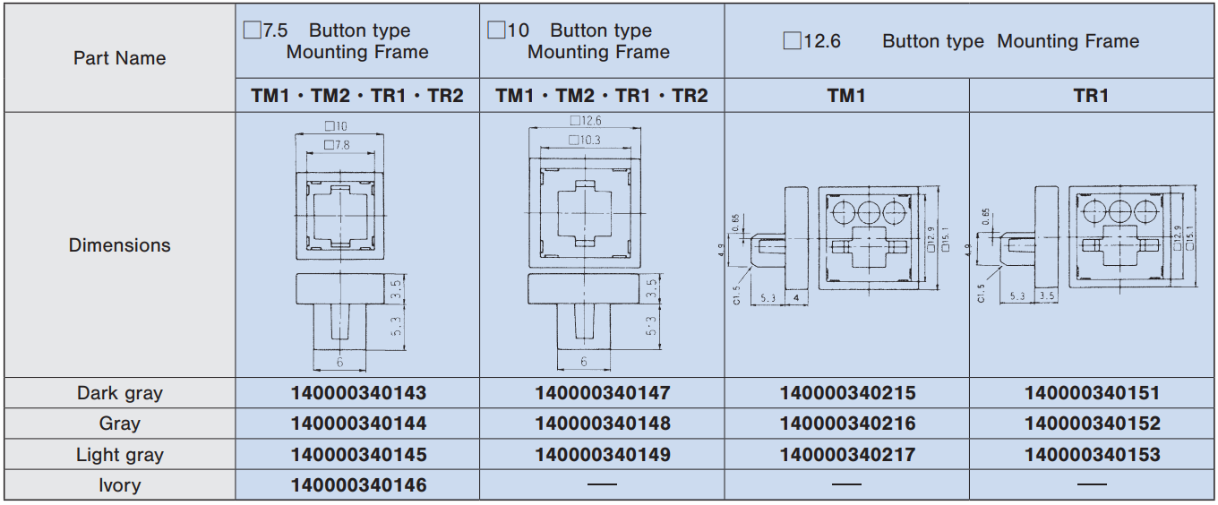 两种类型的触点 专用于印刷电路板 TR系列采用导电橡胶触点,触感柔和 TM系列采用金属触点,触感清脆 提高耐焊接热性能 独特的端子形状防止在浸焊过程中出现电路板面浮起的情况