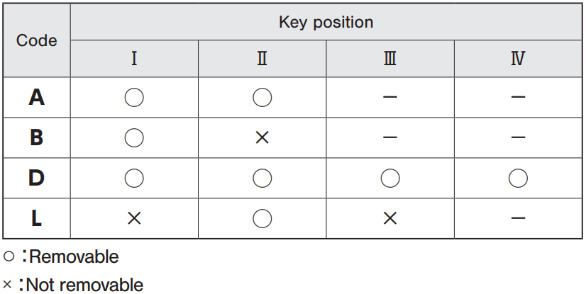 ②钥匙可拔出位置