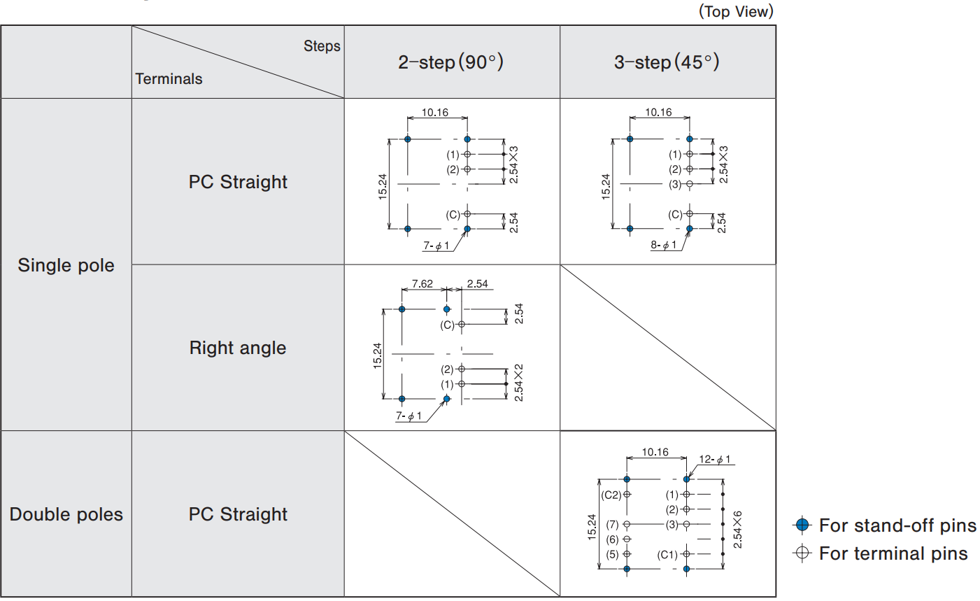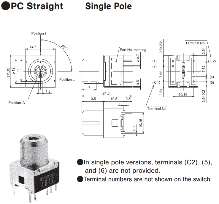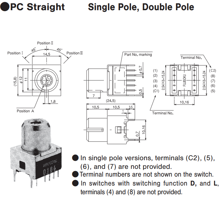 ★MRK2031D-Z 45°step 3-position 2极 PC针脚 ON-ON-ON