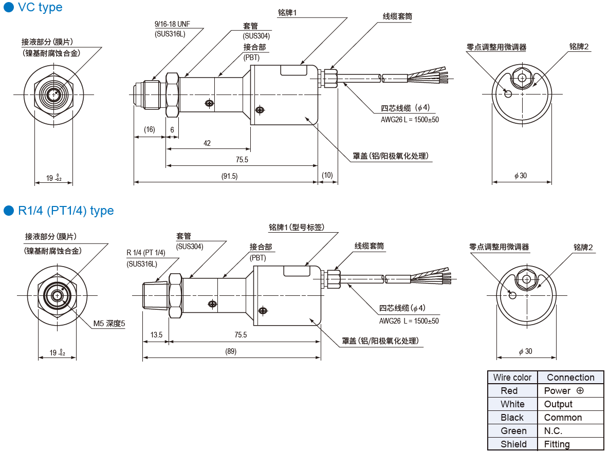 接头形状 VC:9/16-18UNF R2:R1/4 (PT1/4) |
