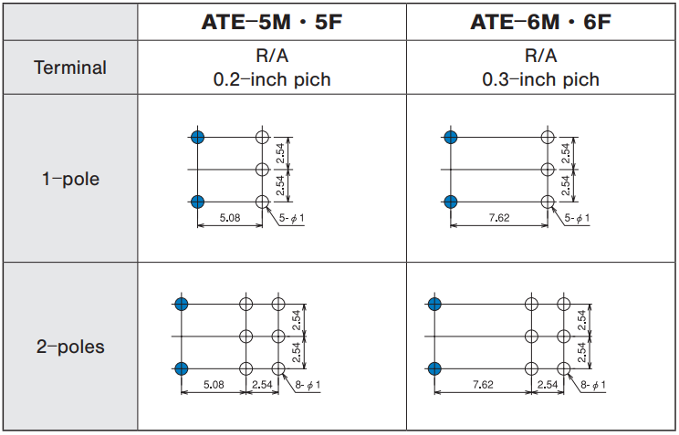 [Example] 0.2-inch pitch: ATE1D-5M3-10-Z 0.3-inch pitch: ATE1D-6M3-10-Z