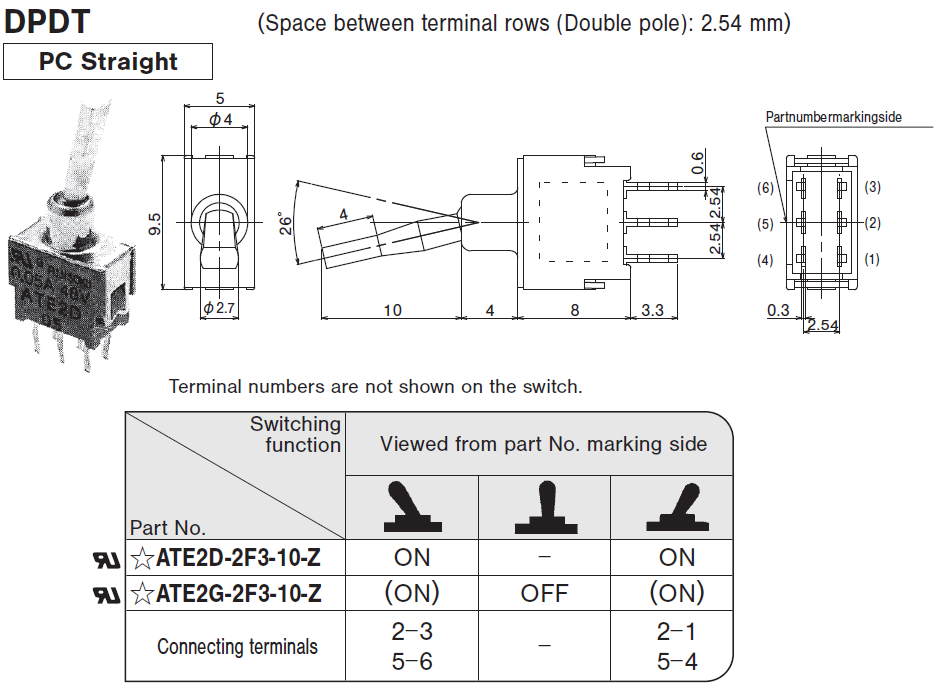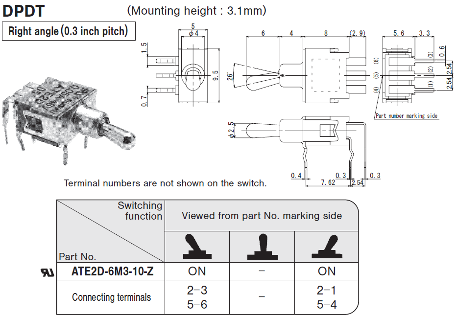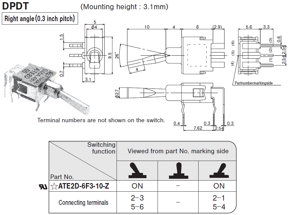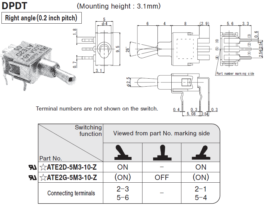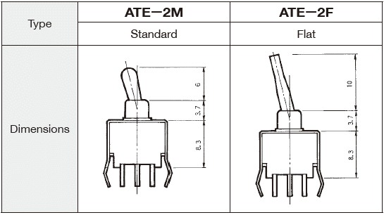 ☆ATE2D-6F3-10-Z DPDT Flat toggle 0.3R/A Mounting height : 3.1mm ON-ON