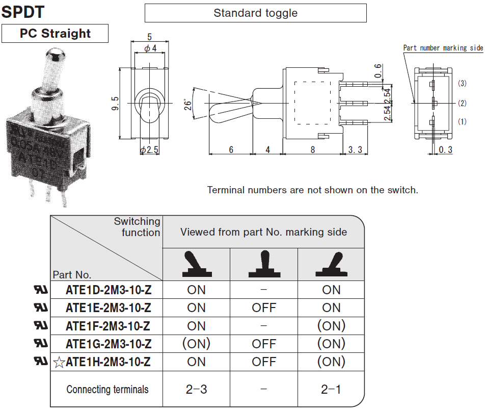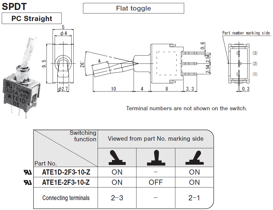 ★ATE1F-6F3-10-Z SPDT Flat toggle 0.3R/A Mounting height : 3.1mm ON-(ON)