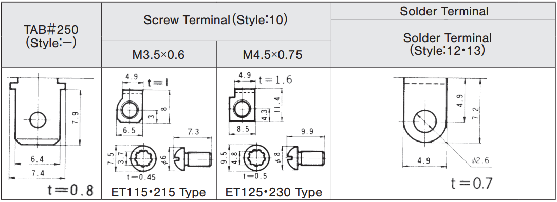 ON-OFF | 焊接端子 TAB#250 螺丝端子(M4.5×0.6) |