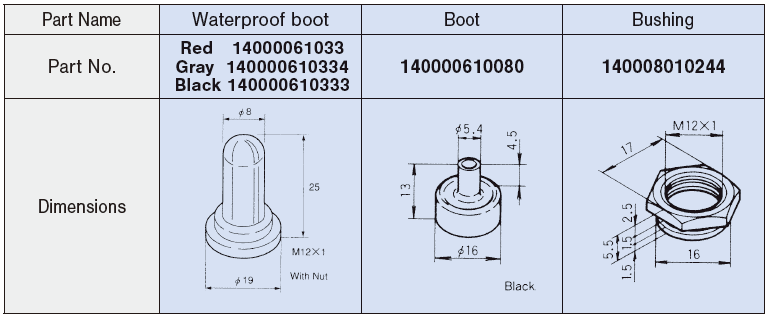 手工焊接 装置:烙铁 420℃, Max.; 3 seconds, Max. 关于防水帽:①安装在开关上的是内置螺母。 ②适用产品不是平板安装型。 |
