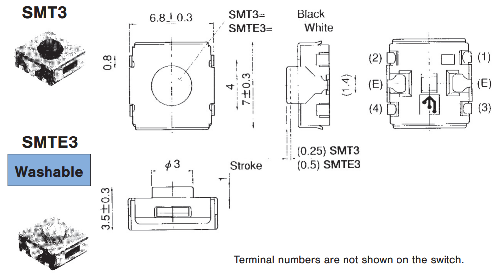 SMTE3-01E-Z 可浸洗 橡胶按钮 压纹带装