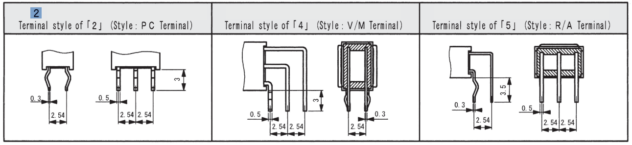 端子类型 PC Straight PC Right angle PC Vertical mounting