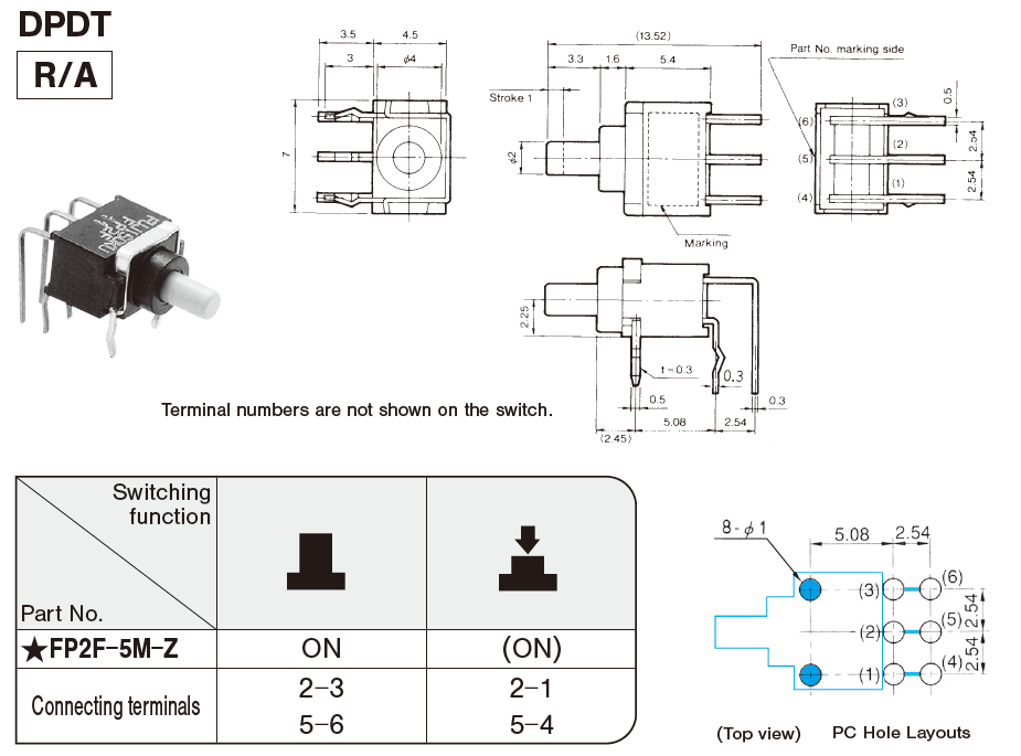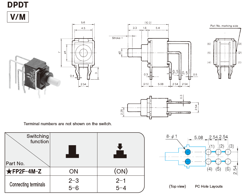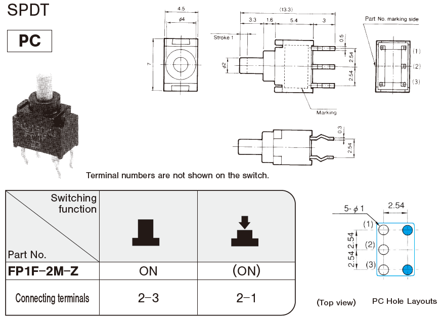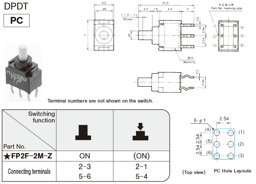 FP2F-4M-Z 2极 ON-(ON) PC Vertical mounting
