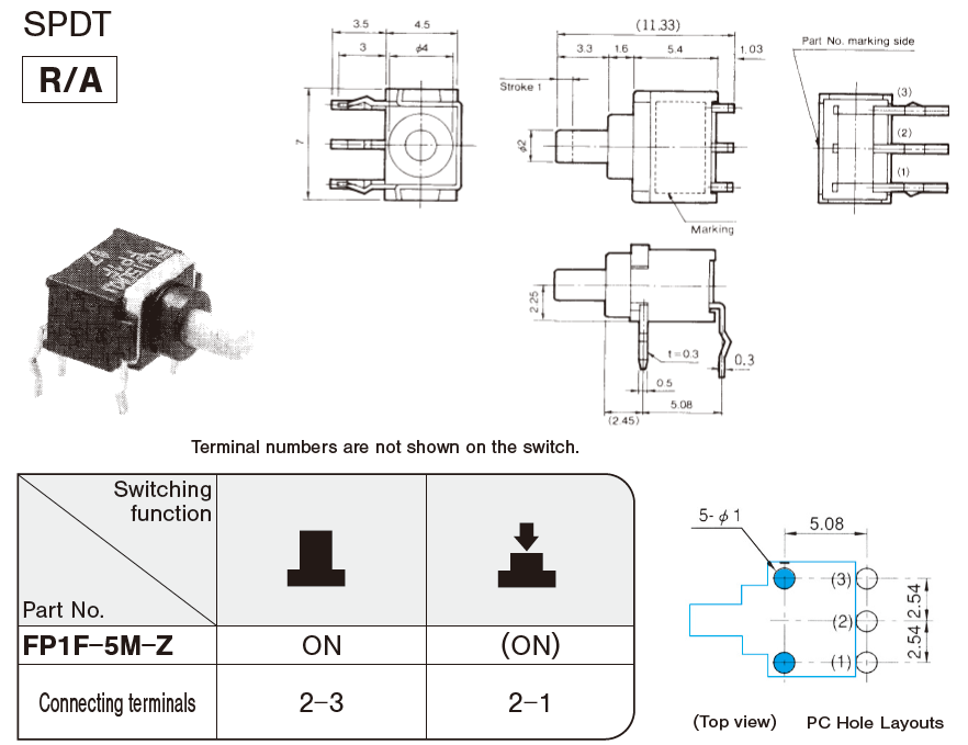 FP1F-5M-Z 1极 ON-(ON) PC Right angle