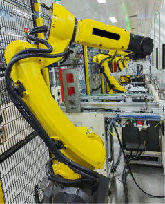 针对装配线物料搬运装夹、上下料情况,部署4轴、6轴机器人在装配线各工序上,实现工序间上下料、夹具装夹的自动化,结合智能检测装备,实现产线柔性化协同加工。