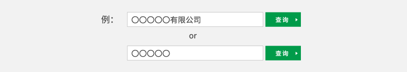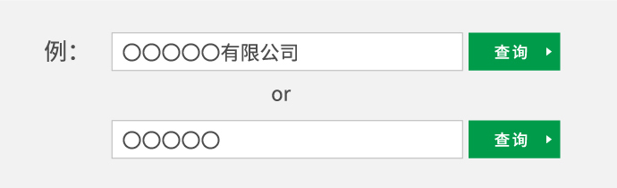 说明:1)请输入公司全称或者关键词,完全匹配后显示结果。例如:◯◯◯◯有限公司 或者 和该公司相关的关键词。