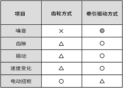 与齿轮传动装置不同,由于齿轮的啮合不会产生冲击噪音,因此静音性较好,而且即使不旋转,辊之间也始终保持接触,可以保持较小的齿隙。