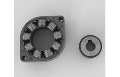 (1)定子(左)和转子(右)。绕组方式不是分布式,一般为集中式绕组。转子表面的永久磁铁为钕磁铁。