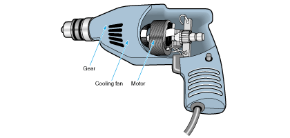由于具有以上特性,因此,一般会用于家电产品中要求轻量大输出的吸尘器、电钻(图2.34)这样的工具或需采用感应电机进行高速旋转的榨汗机及咖啡豆研磨机等。