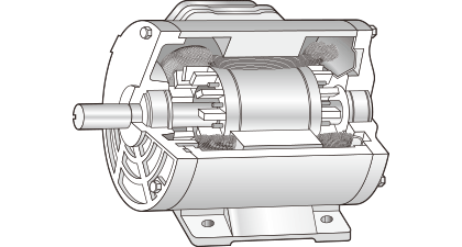 家庭电源为单相AC100V,因此,使用感应电机时需通过某种方法来制作电源和相位偏移的正弦波来旋转磁场。其中一种方法就是使用电容器,将线圈的电流相位前移90゜。采用这种方法旋转的电机称为电容器起动式单相电机。