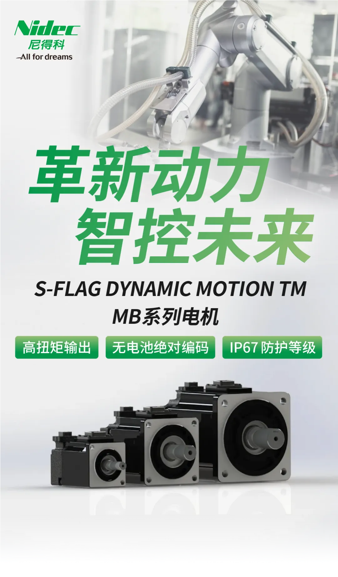 为此,尼得科推出新一代AC伺服“S-FLAG DYNAMIC MOTION TM”MB系列电机,集成无电池磁性23位绝对值编码器与高动态性能电机本体,实现动力系统与智能控制的协同跃迁。