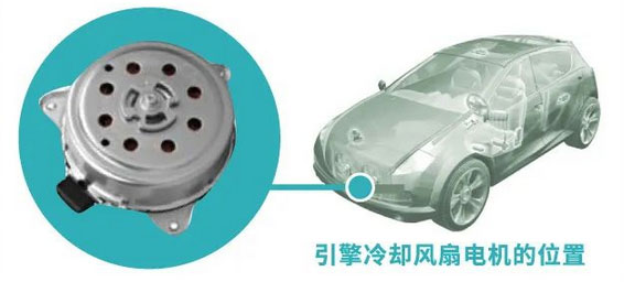 引擎冷却风扇电机为汽车发动机冷却系统中的风扇驱动用电机,工作时能够输出稳定且较高转速的扭矩,与输出端的风扇配合可以产生强度可控的风压,使散热器中高温的冷却液得到冷却,降低发动机及空调冷却液的温度。以保证车载空调及发动机的工作性能。