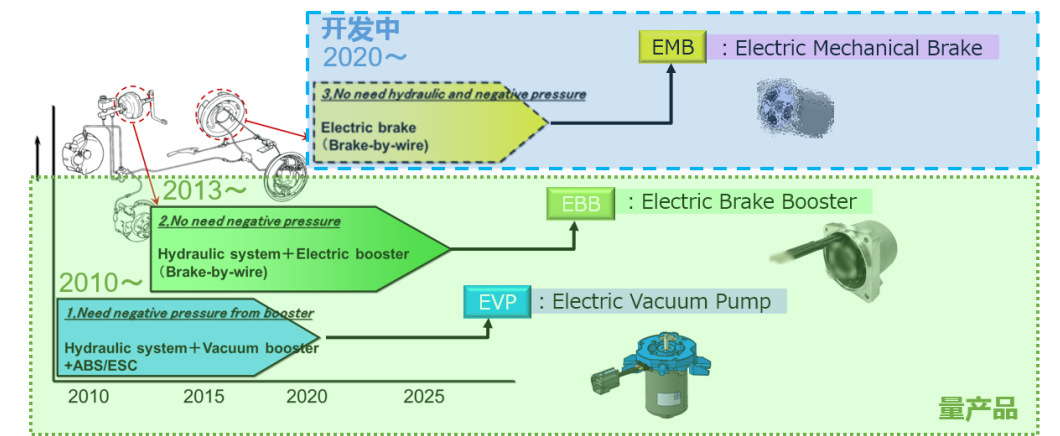 实现产品性能集成化,轻量化。有效提升驾驶舒适性,改善燃油经济性,替代发动机制动模式。EBB 1box集成ESC 功能,而EBB 2box+ESC共同实现刹车制动功能。