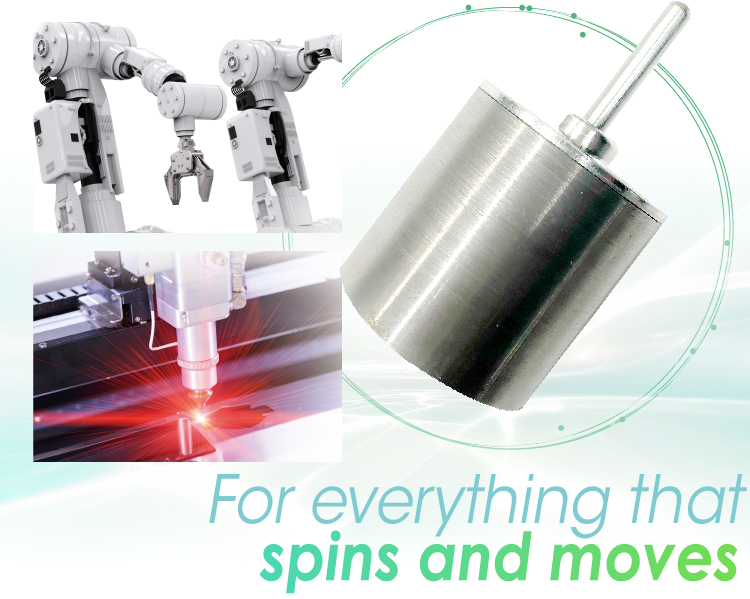 我们的产品致力于一切转动体和移动体。例如,从智能手机里使用的可以放在手指上的微型马达电机,到在产业领域使用的是成人几倍体积的超大尺寸马达电机,应有尽有。以马达电机为核心、与马达电机组合的机器装置、马达电机相关应用产品共同构成我们的业务范围。