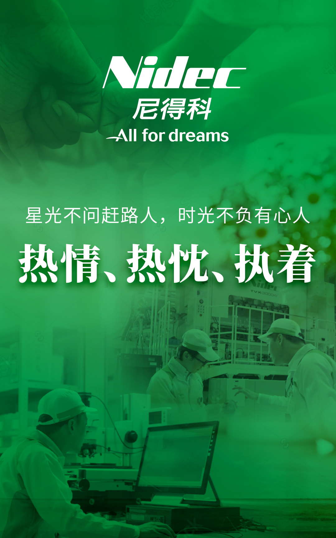 在尼得科,每一个清晨都是一个新的起点,每一位员工都在追逐着梦想的脚步中闪耀着自己的光芒。