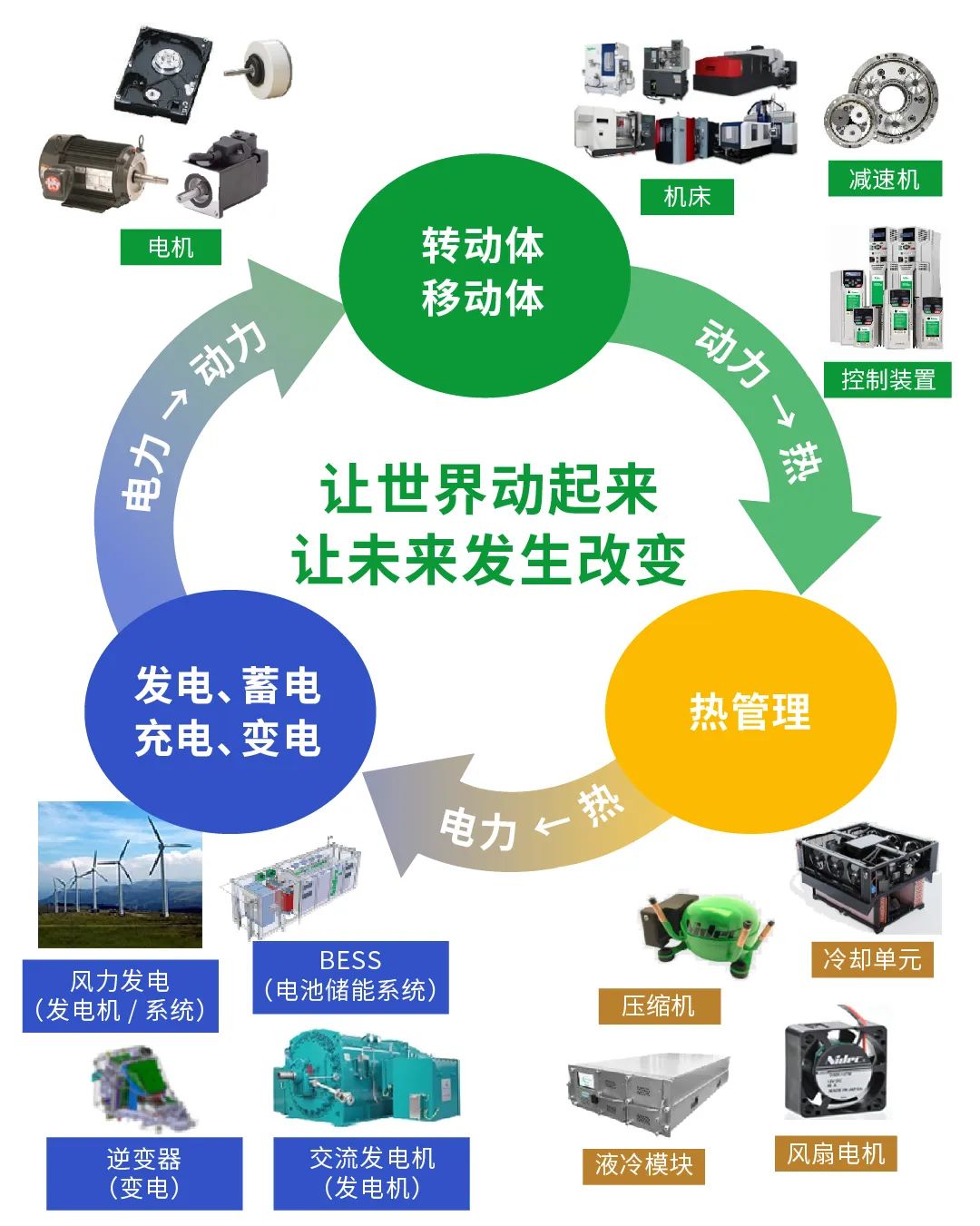 在原有的“转动体、移动体”核心技术的基础上,再添 “热管理”技术和“发电、蓄电、充电、变电”技术。