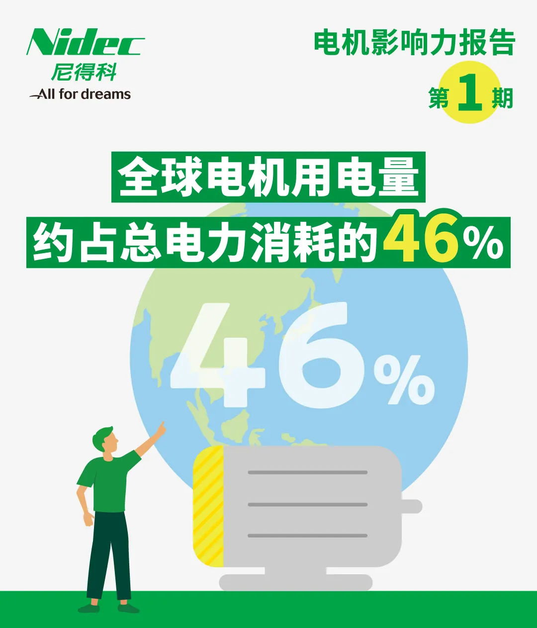 为清晰展现电机技术对社会与环境的贡献,Nidec将分三期为您带来《电机影响力报告》,通过图文的形式,全面解析电机在国民经济中的影响力以及未来应用前景!