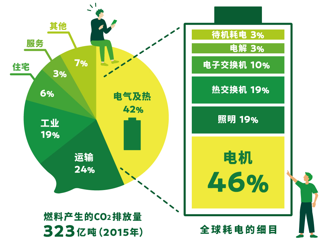 电机作为工业、交通和家用设备的核心动力,其能耗占全球用电量的46%!(※1)这意味着除加快能源转型以外,抑制电机的耗电量也至关重要,制造更高效能的电机有助于降低全球耗电量,也是全球低碳化的必经之路。