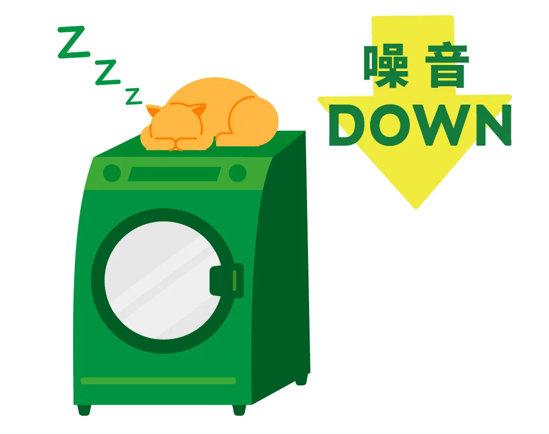 你是否觉得洗衣机变得更加静音了呢?事实上,尼得科在实现静音家电产品方面作出了巨大贡献。尼得科是全球较早将树脂封装电机(※3)投入实际应用的公司之一,该项技术大幅减少了与传统电机相比的振动和噪音。此外,尼得科还在推动无刷DC电机在洗衣机中的实际应用。无刷DC电机易于控制,能够减轻洗衣桶内水流的噪音,从而实现更加安静的运转,且电机本身也更静音了。因此,现代洗衣机能够实现非常低的噪音量。未来,或许会有几乎完全静音的洗衣机诞生。