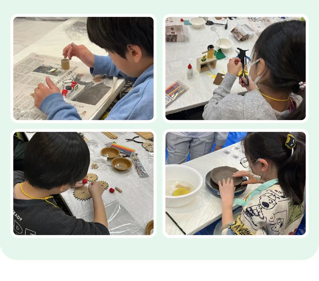我们为京都府的小学生们准备了“线圈电机”、“八音盒BOX”、“八音盒工作原理”、“齿轮拼装”、“手捏陶艺”、“陶绘”等6个手工组,通过DIY制作,让小朋友们了解尼得科集团的技术和产品。