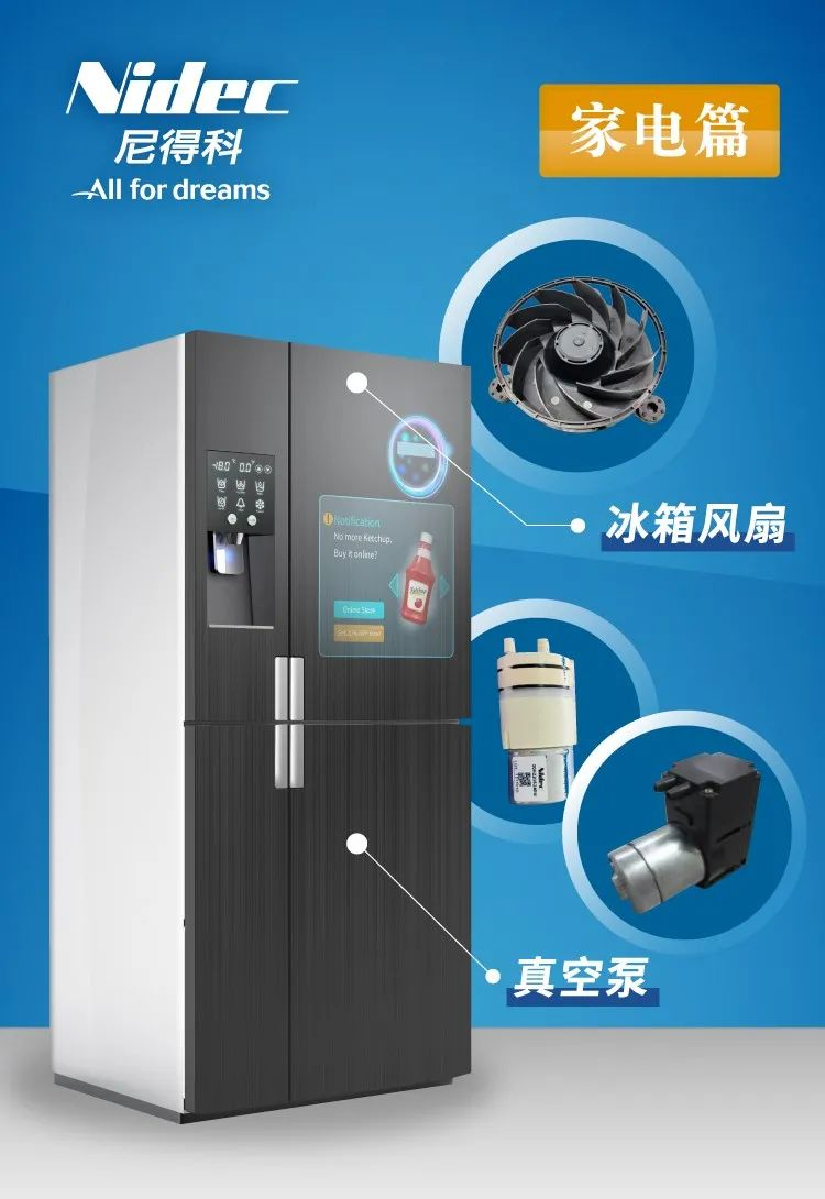 不仅仅是电冰箱,尼得科提供满足家电,ICT,车载,机器人等各行业多样化的电机相关产品和解决方案。